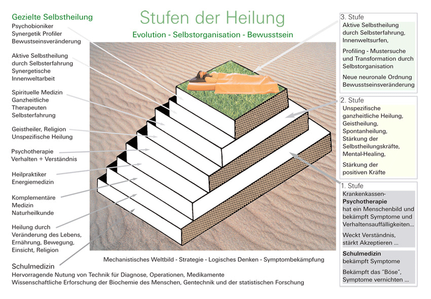 Körperebene sich neu zu strukturieren. Prof. Rost stellte 2005 dazu in seinem Gutachten fest: ”Da die Neuorganisation nicht nur die geistigen, sondern auch die körperlichen Strukturen betrifft, kann mit der Neuorganisation auch eine Heilung körperlicher und psychischer Krankheiten eintreten. Da diese Heilung nicht mit zielgerichteten Mitteln erfolgt, sondern durch die Selbstorganisation hervorgerufen wird, spricht man auch von Selbstheilung.” |