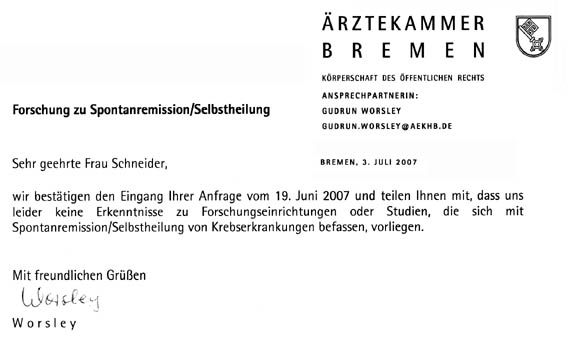 - der Krebs war weg. Sein Prof meinte, nur einer von 250 Fällen,